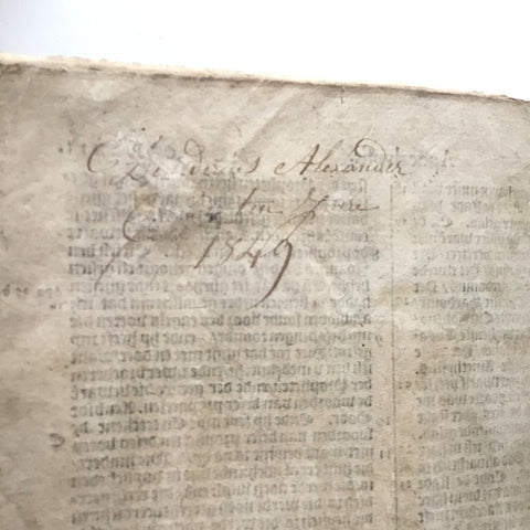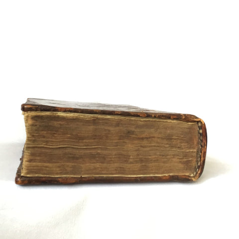 CONDITION: Very good condition; collated complete, except the original title page, which is replaced with a facsimile on modern laid paper from a different issue of the 1599 edition. Contemporary calf binding rebacked with the original covers pasted on, some peeling, lacks, and gouges in leather; corners repaired. Marginal repairs and reinforcement, a few corner and marginal tears, some pinholes, ink and other stains; last leaf (R10) has old owner's signatures with dates on recto and verso, "Sum. Ludovici Boulanger Pastoris in Morbeke 1657," "33" on free endpaper; stamp "Von LandSchoot CSTENDE" on ff. C2, M5, Ii4 and V6.