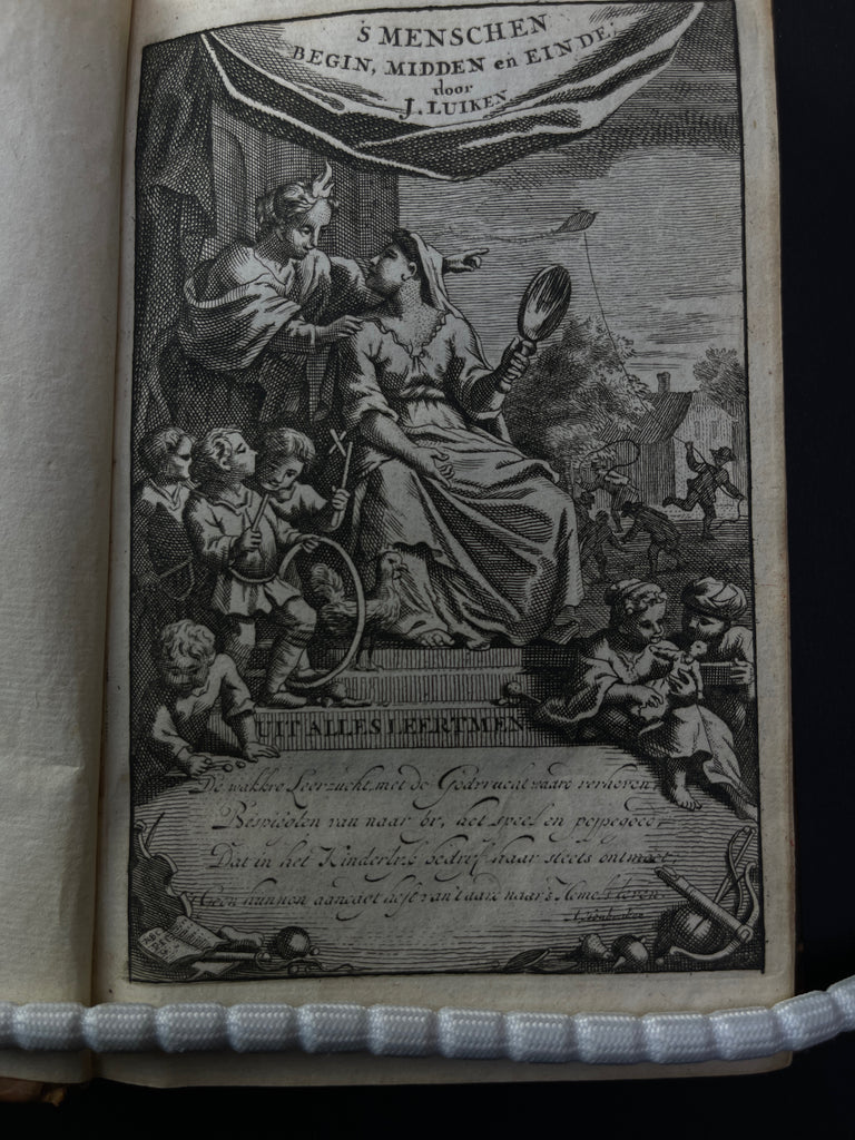 Luyken was a Dutch poet, painter, and engraver, trained by his father, Kasper Luyken, in Amsterdam. The book contains proverbs for children alongside images of various children's games and other scenes.