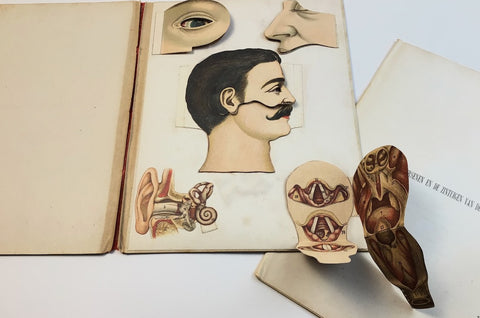 CONDITION: Good condition overall; the text block is completely loose, else very good; the moveable anatomical models are complete and in very good condition.