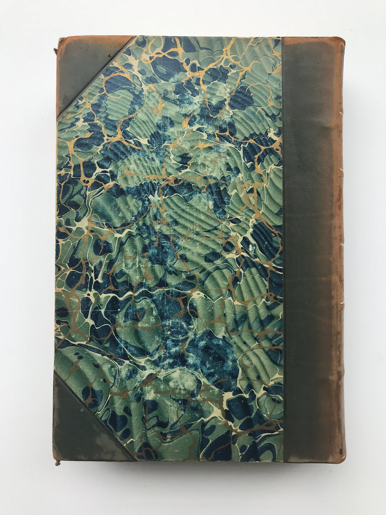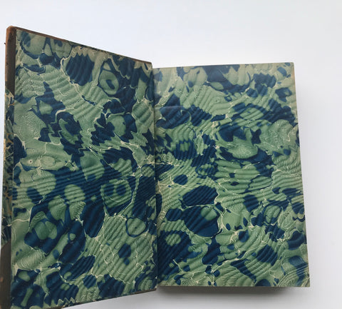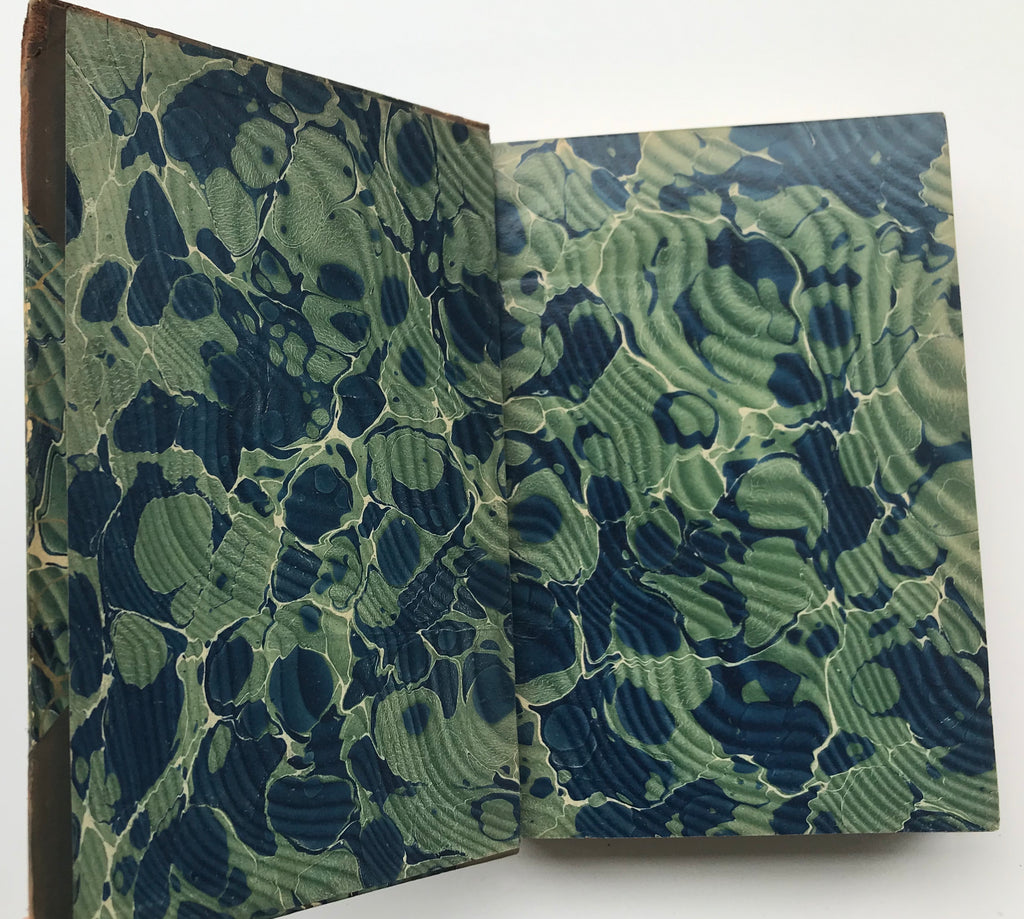 CONDITION: Overall, in very good condition. Some scuffing on spine and bindings. Bindings are tight and secure. All pages intact. Some fading of the marbling but bright colors shine through. Corners bumped with some leather peeling, but still hold form. Some page corners creased or folded. Endpapers are bright and saturated in color.