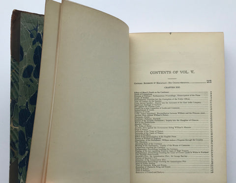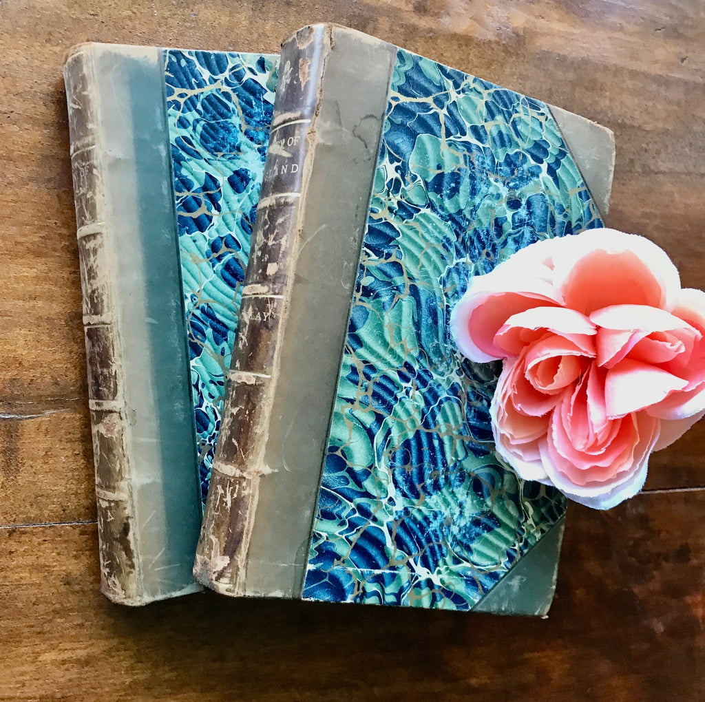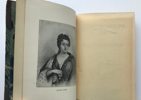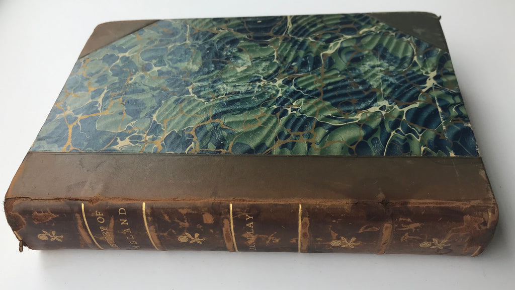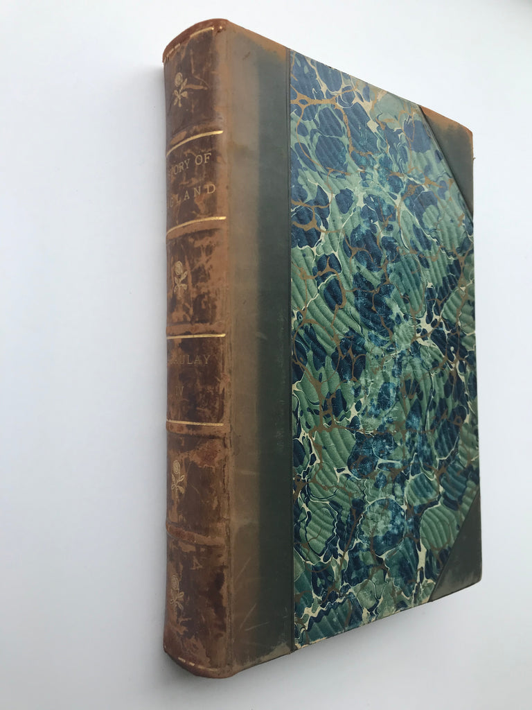8mo. Hard Cover. Very Good Condition. Half-calf with marbled boards. Beautifully bound copies of Thomas Babington Macaulay’s “History of England” volumes 4 and 5. Books feature very interesting green, blue and gold marbling patterns on the bindings and endpapers. Spines are a soft brown leather with gold-gilt decoration, bands, and lettering. Volume IV with front engraved portrait of Loius XIV, volume 5 with front portrait of Queen Anne. Both volumes illustrated with engravings throughout. Undated but likely late 19th century.