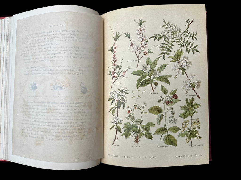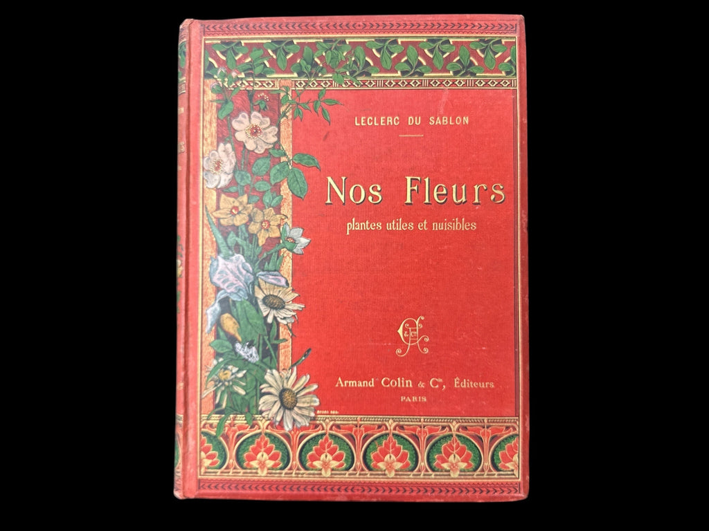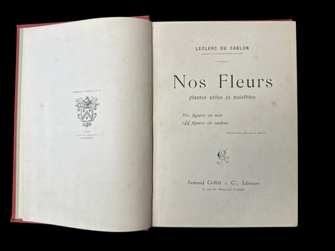 Leclerc du Sablon. Nos fleurs, plantes utiles et nuisibles. Paris: Armand Colin & Cie, Éditeurs. 4to, (I-V)VI-XV, pp132. Decorated red-cloth boards and spine with gold-gilt lettering;]; Advertised as 350 [i.e. 305] botanical figures in black, and 144 chromolithographs, hors-texte.