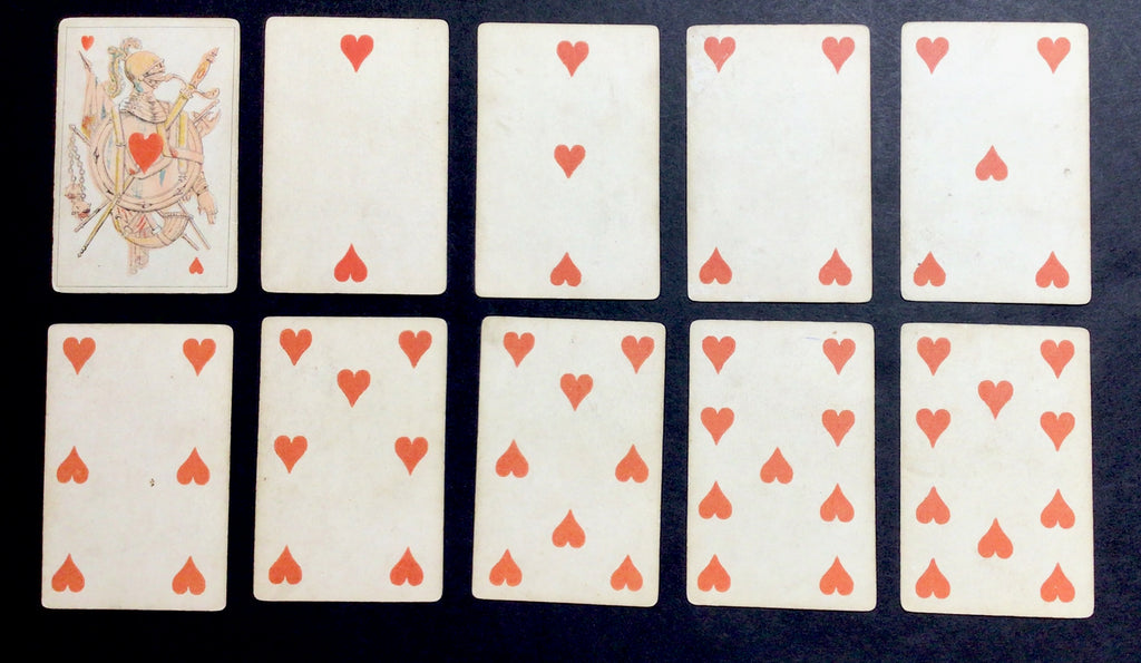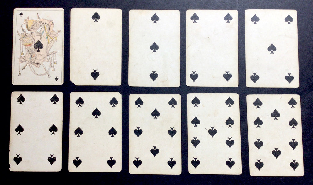 of Spades, Two & Four of Clubs, Five and Ten of Diamonds; with of signs