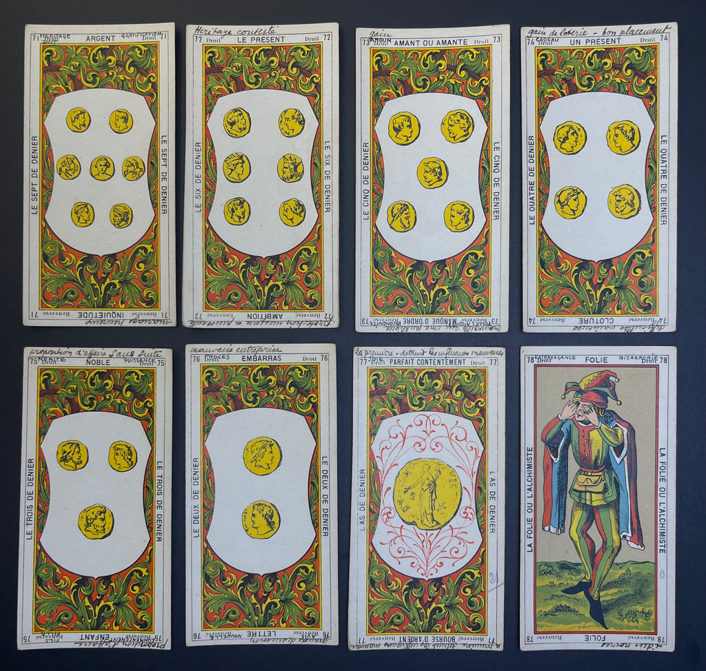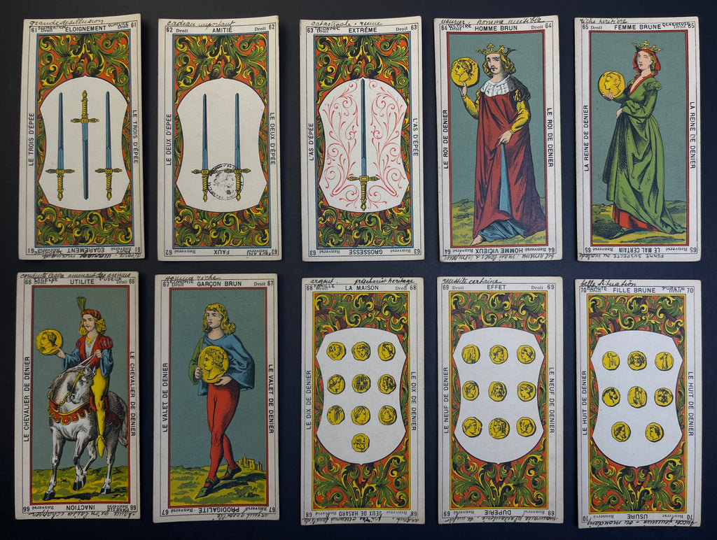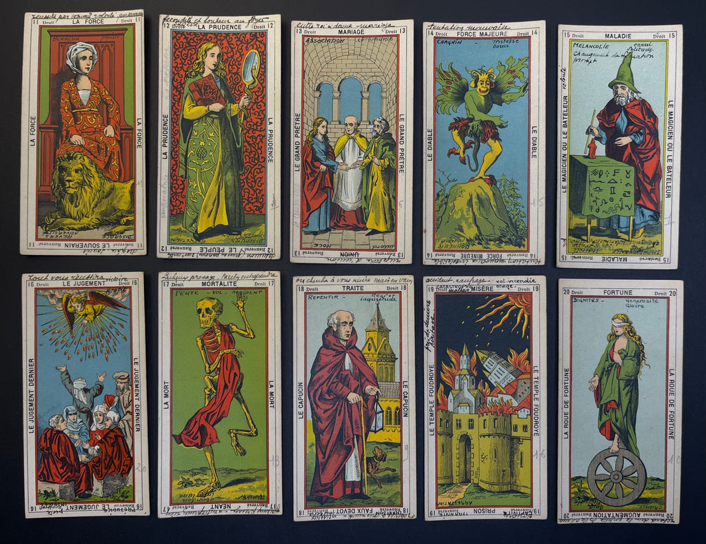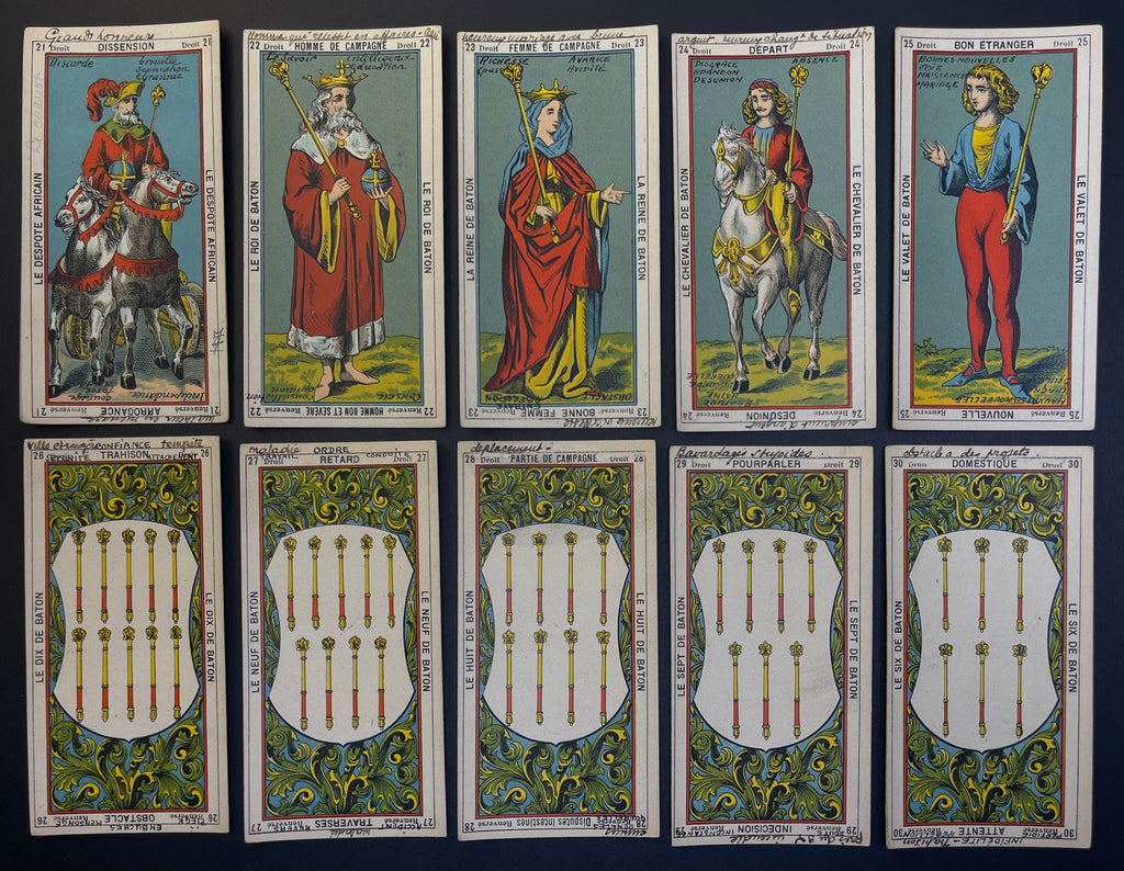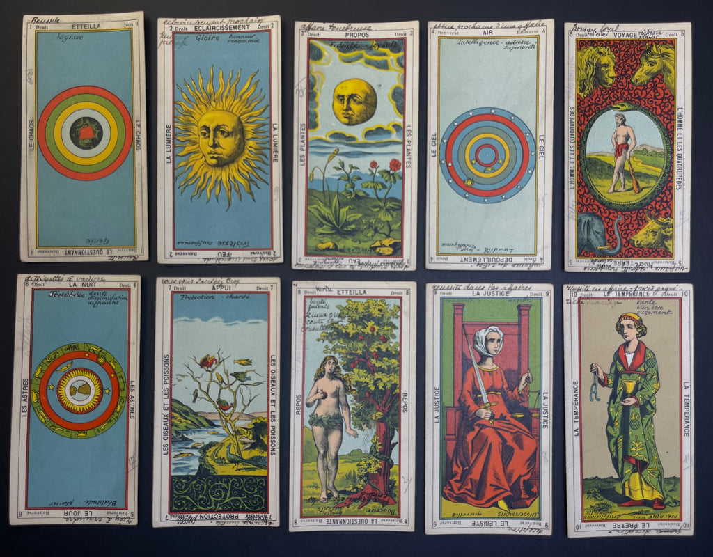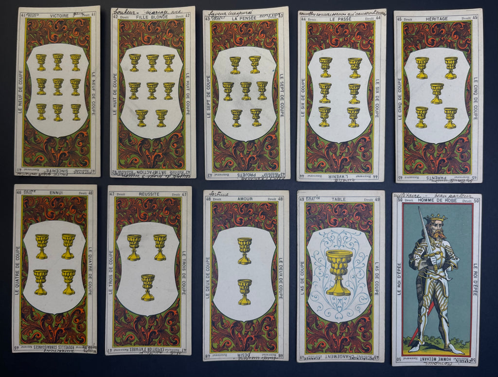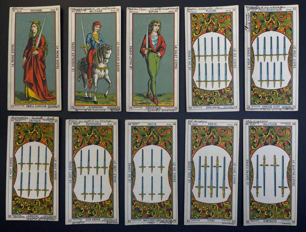 c.1885 Grand Oracles des Dames, Etteilla Type III Tarot. Complete 78/78 cards