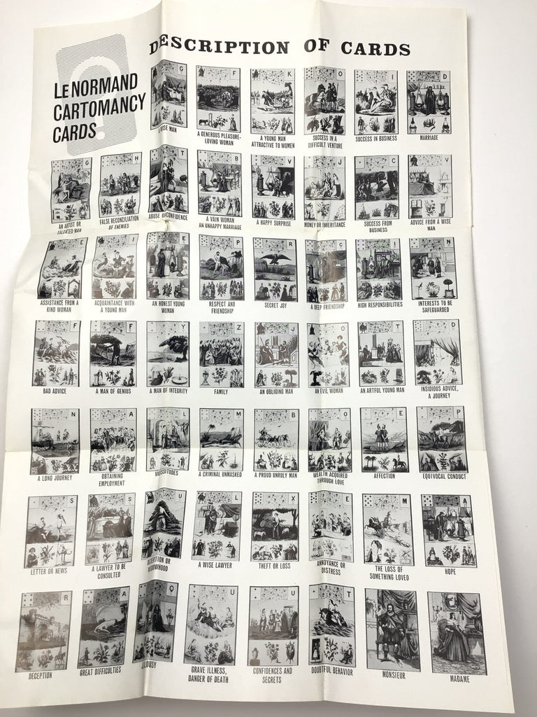 c.1970 Grand Jeu de Mlle Le Normand Astromythological Cards 54/54, booklet, card description poster, and box