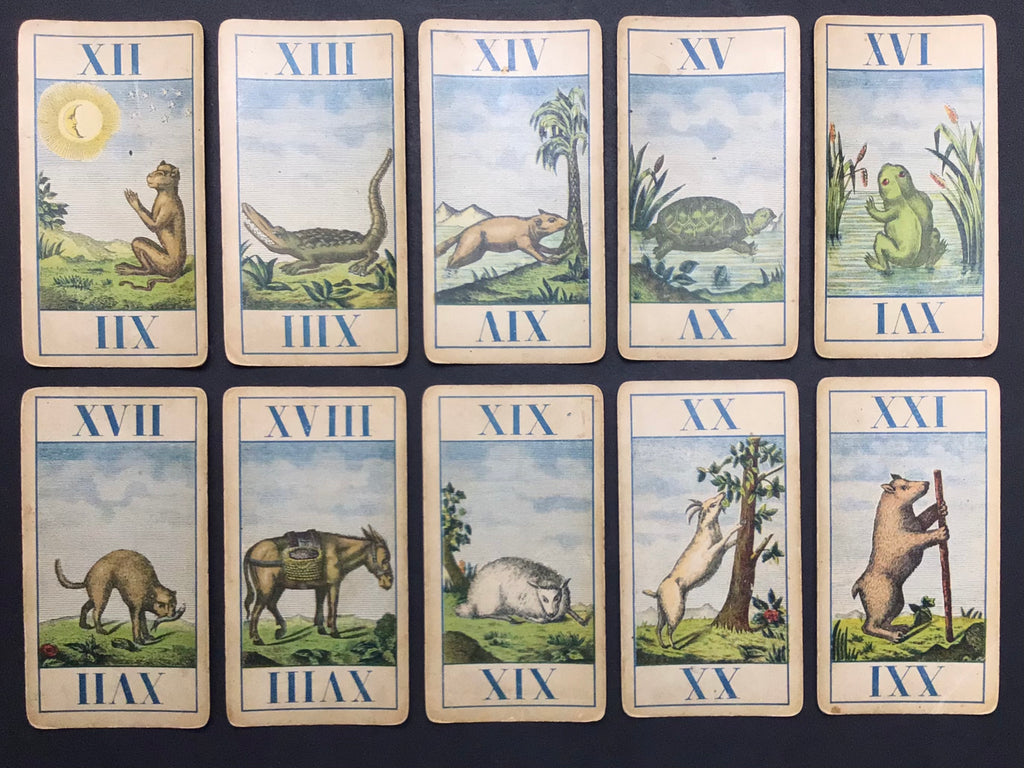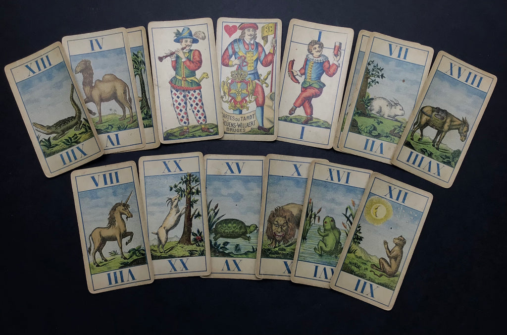 Description: Belgian Animal Tarot (Tarot Animalier), printed by Geûens-Willaert, Bruges, 1901, the successor of Geûens-Seaux, who was the successor of card-maker Daveluy.