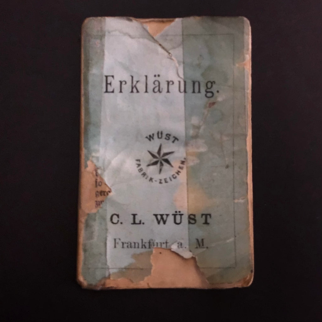 · Text booklet front cover: "Erklärung," "Wüst/Fabrik-Zeichcn," "C.L. Wüst"