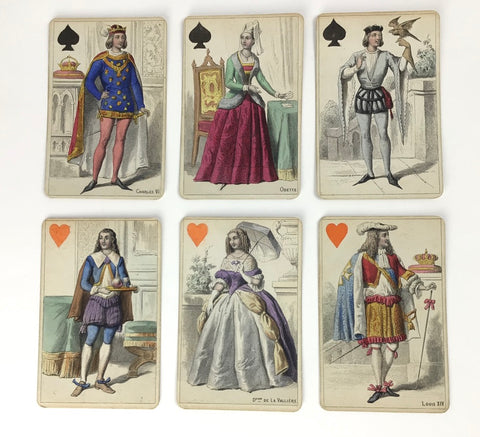 Description:  This beautiful deck was first published by B.P. Grimaud in c.1856 and reprinted in c.1891. These costume playing cards are exquisitely engraved and hand-painted. Deck with gold-gilt corners.