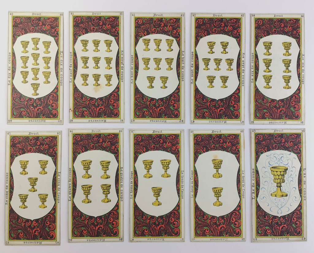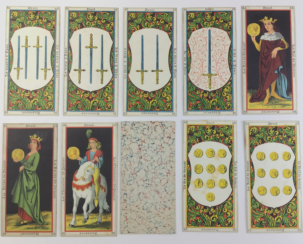 c.1865 Etteilla III, Le Grand Jeu de L’Oracle des Dames, lithographs by G. Regamey, printed by Haugard-Meuge. Incomplete 72/78 cards