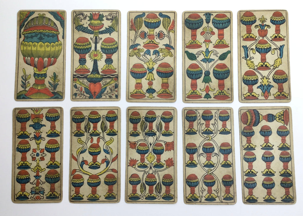 Marseilles Tarot, circa 1890, Schaffhausen & Hasle, J. Muller & Cie, 78 of 78 cards.