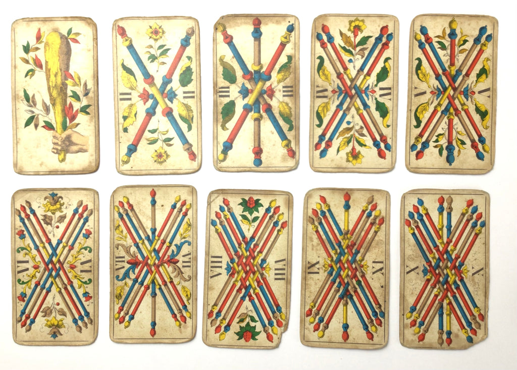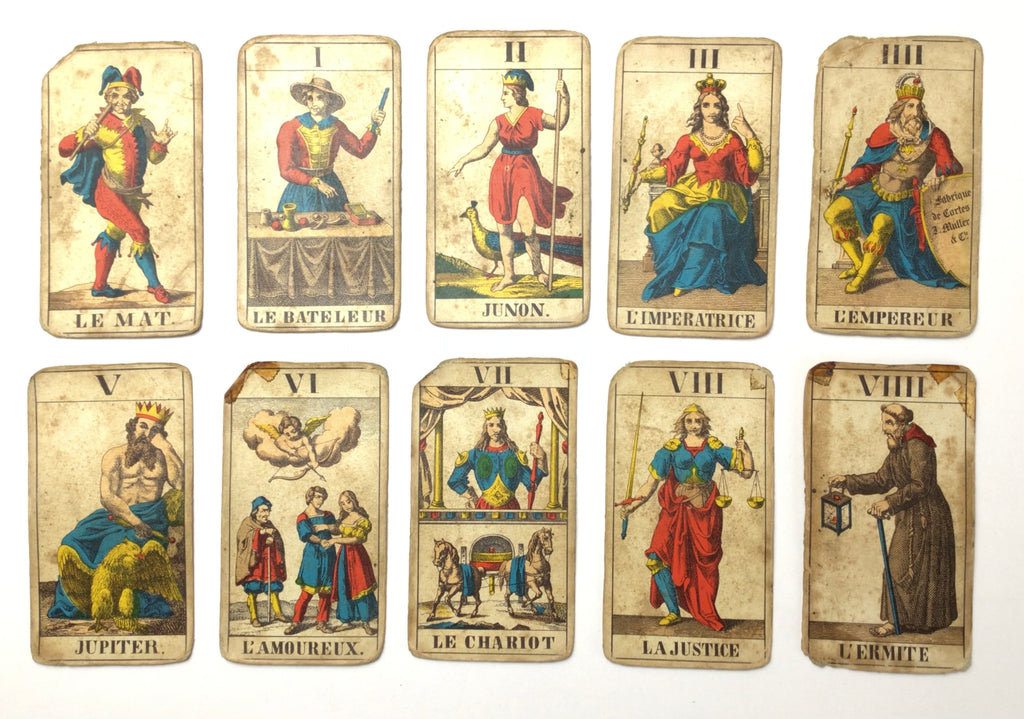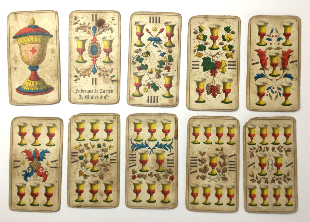 circa 1900 Tarot, Schaffhausen & Hasle, J. Muller & Cie, 78 of 78 cards.