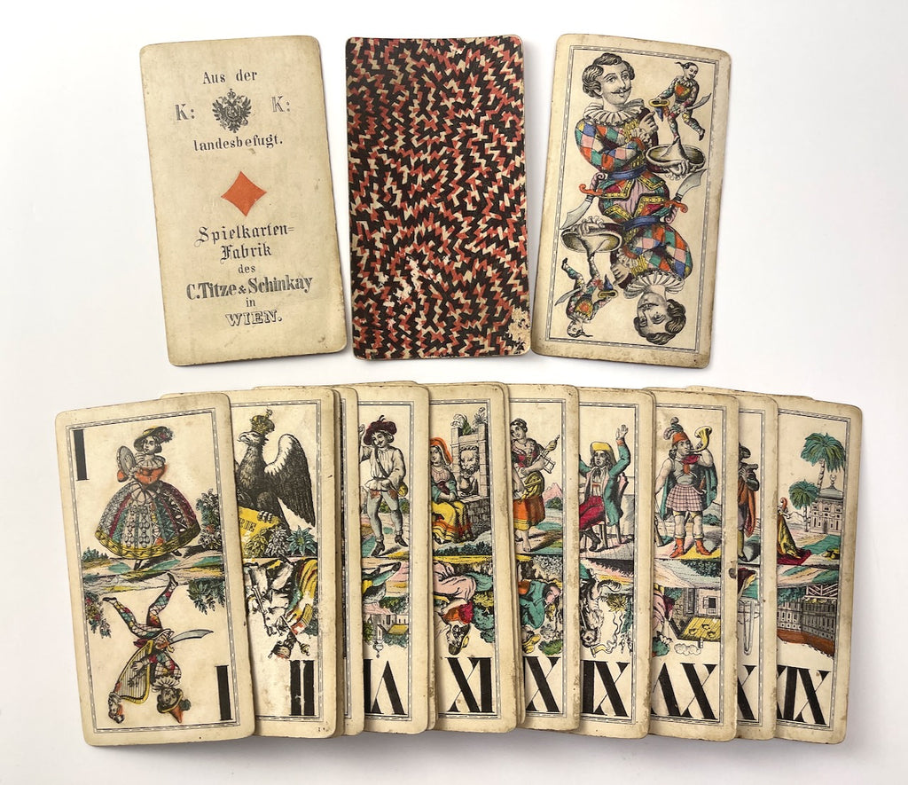 - Style: Austrian Tarock (21 Trumps + Fool, with 4 suits of 8 cards).