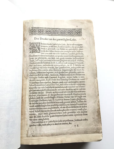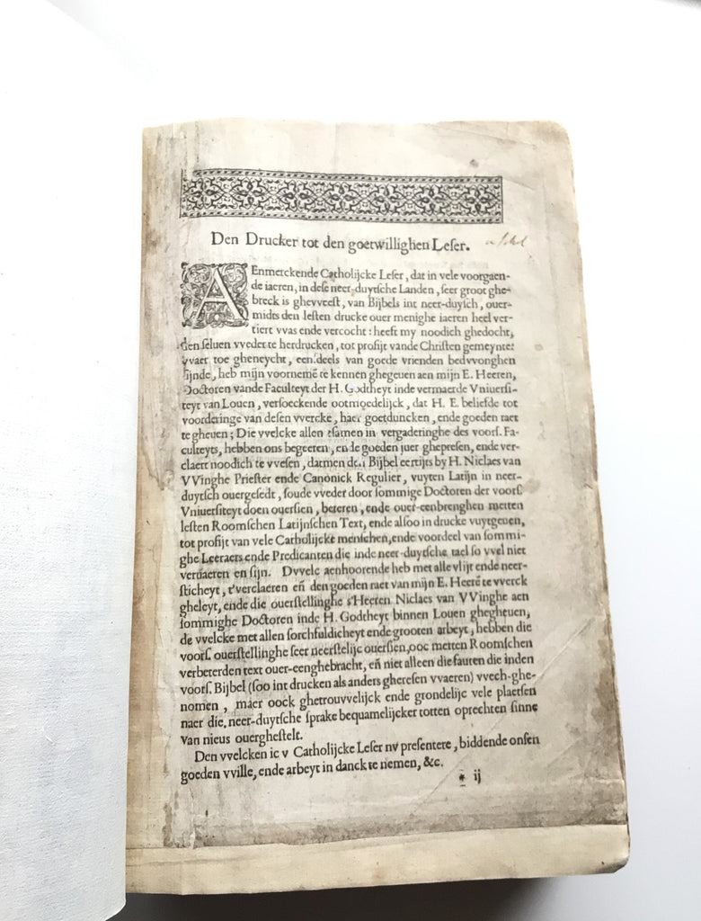 FULL TITLE: DAT IS DE GEHEELE HEYLIGHE SCHRIFTURE BEDEYLT INT OUT ENDE NIEU TESTAMENT: VAN NIEUS MET GROOTE NEERSTICHEYT OVERSIEN, ENDE NAER DEN LESTEN ROOMSCHEN TEXT VERBETERT DOOR SOMMIGHE DOCTOREN INDER HEYLIGHER GODTHEYT INDE VERMAERDE UNIVERSITEYT VAN LOVEN.