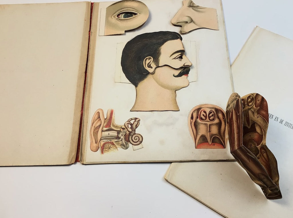 CONDITION: Good condition overall; the text block is completely loose, else very good; the moveable anatomical models are complete and in very good condition.