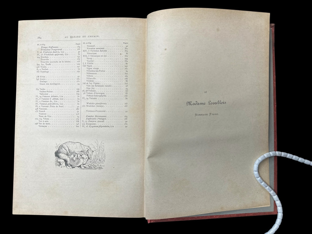 Meunier (Stanislas), M. et Mme. Au Hasard du Chemin. France: J. Rothschild, ND (c.1900). Bound in red cloth with gold gilt title on decorated spine, and gilt fore-edge; Large octavo, pp.384; Title page printed in red and black; 666 black and white illustrations, along with 20 full colour chromolithograph plates, hors-texte.