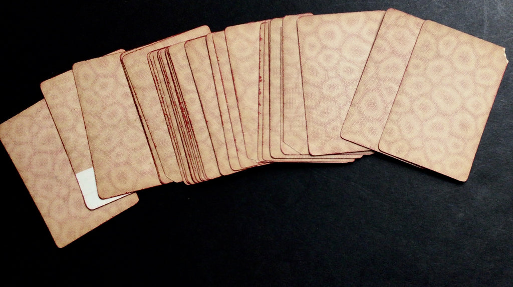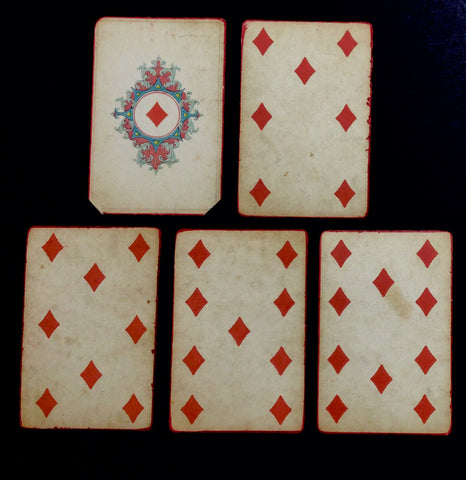 CONDITION: good condition, with some corners clipped, creased, and ripped; some chips, creases, and tears along edges; general wear, staining, and patina; Queen of Diamonds with large tape repair of rip. See photographs for further details