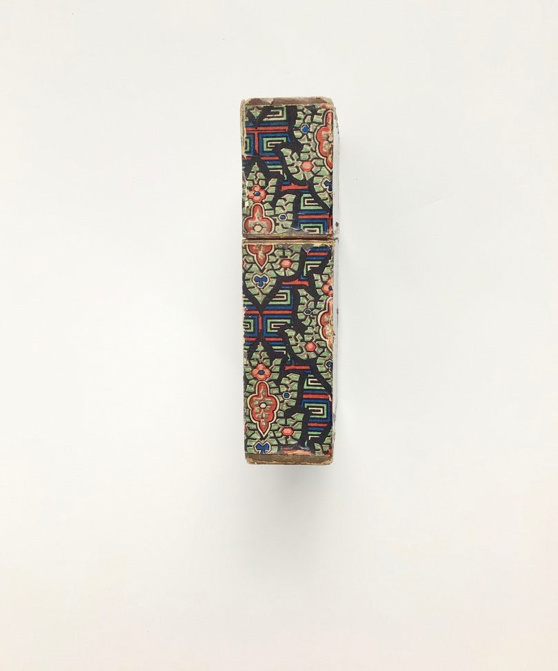 · Box: with Louis XIV (King of Hearts) on the front, and red, black, and green patterned paste paper.