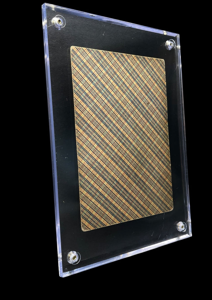 The Grand Lenormand deck was first published in 1845, two years after the death of Mlle Le Normand. The card for sale here is the Three of Hearts from a c.1890 B.P. Grimaud edition of the Gaudais deck, which still bore the mark of J. Gaudais on the consultant card. Sold in a non-recessed, 5" x 7" screwdown cardholder with four screws, no PVC and acid-free.