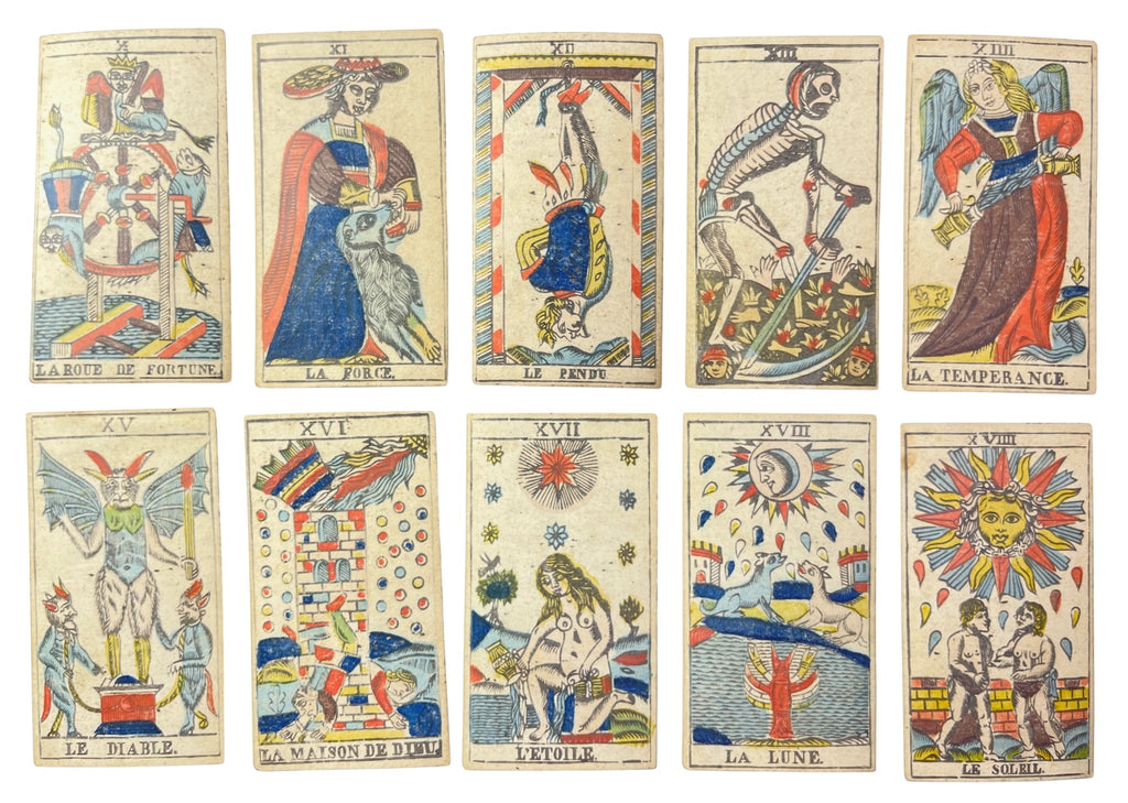 c.1870 Gassmann Tarot de Marseille, complete 78 of 78 cards