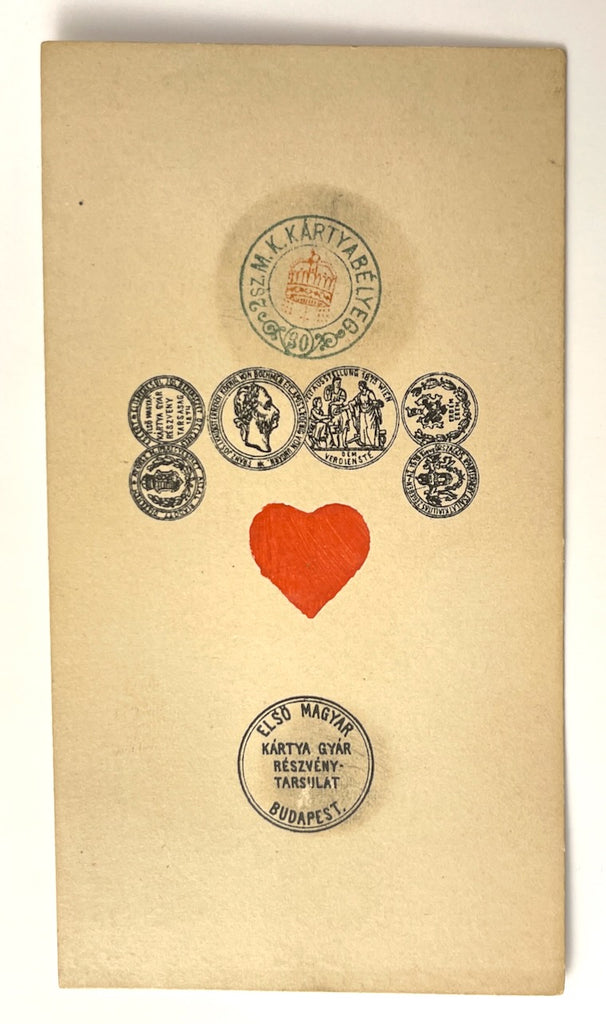 - Tax-Stamp: Ace of Hearts with Hungarian tax-stamp in use between 1883-1905, "These stamps were in use in Hungary from 1883 to 1905."(Enderbrock 2019)