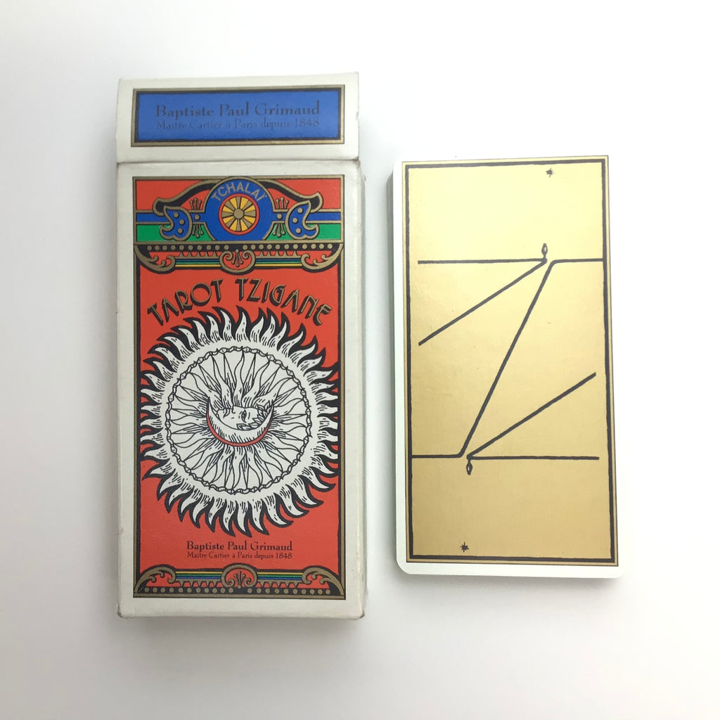 Description: Tarot Tzigane (Tarot of the Roms): An ethnological and divinatory game by Tchalaï (REf. 394 111). Jeu Ethnologiue et Divinatorie, 38 Cartes.